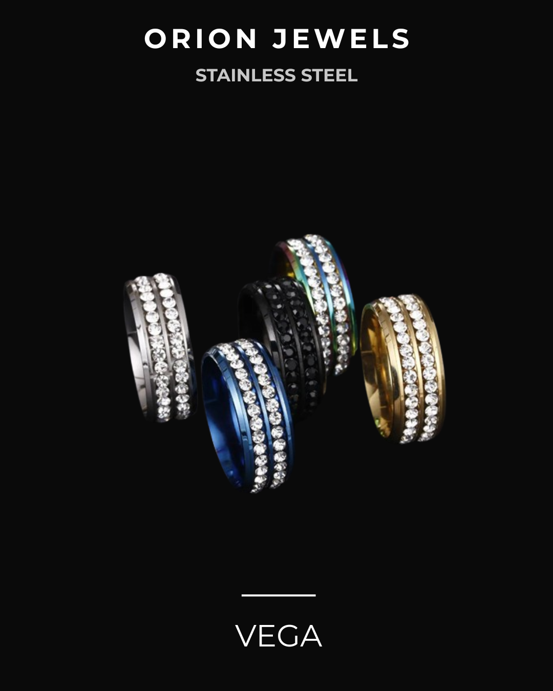 Un design essenziale ma d'impatto: Gli anelli VEGA uniscono linee pulite ma una brillantezza continua. Disponibile in 3 colorazioni, è il dettaglio ideale per chi cerca eleganza e carattere in un solo accessorio